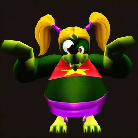 바ン조 카조이를 플레이하다가 게임 오버가 되면, 마녀 그루틸다가 투티의 아름다움을 모두 빼앗고, 투티가 괴물처럼 보이는 장면이 나온다.