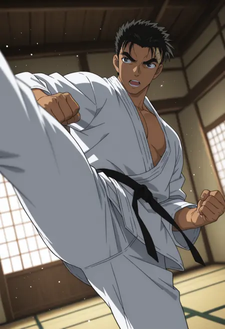 kyogokumakoto,black hair,black eyes,thick eyebrows,bandaid,dark skin,dark-skinned male