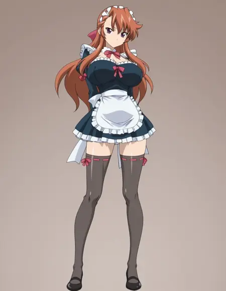 mai_bmk,mai_miori,long_hair,orange_hair,purple_eyes,large_breasts,maid,grey_thighhighs