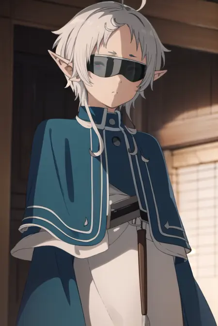 sylphy, short hair, ahoge, white hair, pointy ears, (sunglasses:1.5), elf,