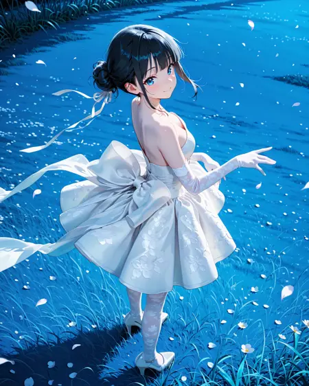 - The original dress material had only one long train, but images generated by this LoRA end up with two. Luckily, this doesn't affect the overall look too much...