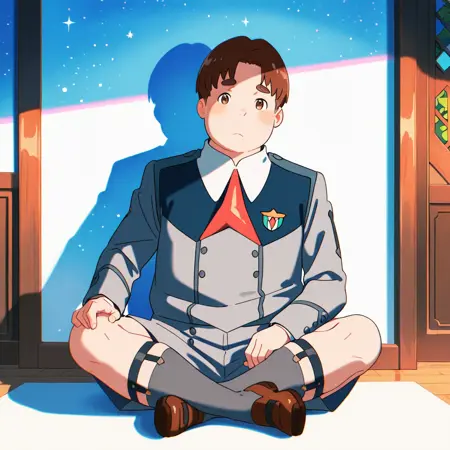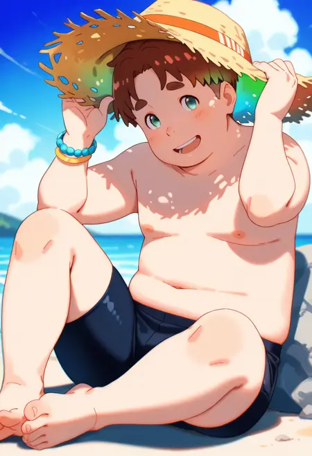 fut0sh1, 1boy, short hair, brown hair, brown eyes, chubby, solo,