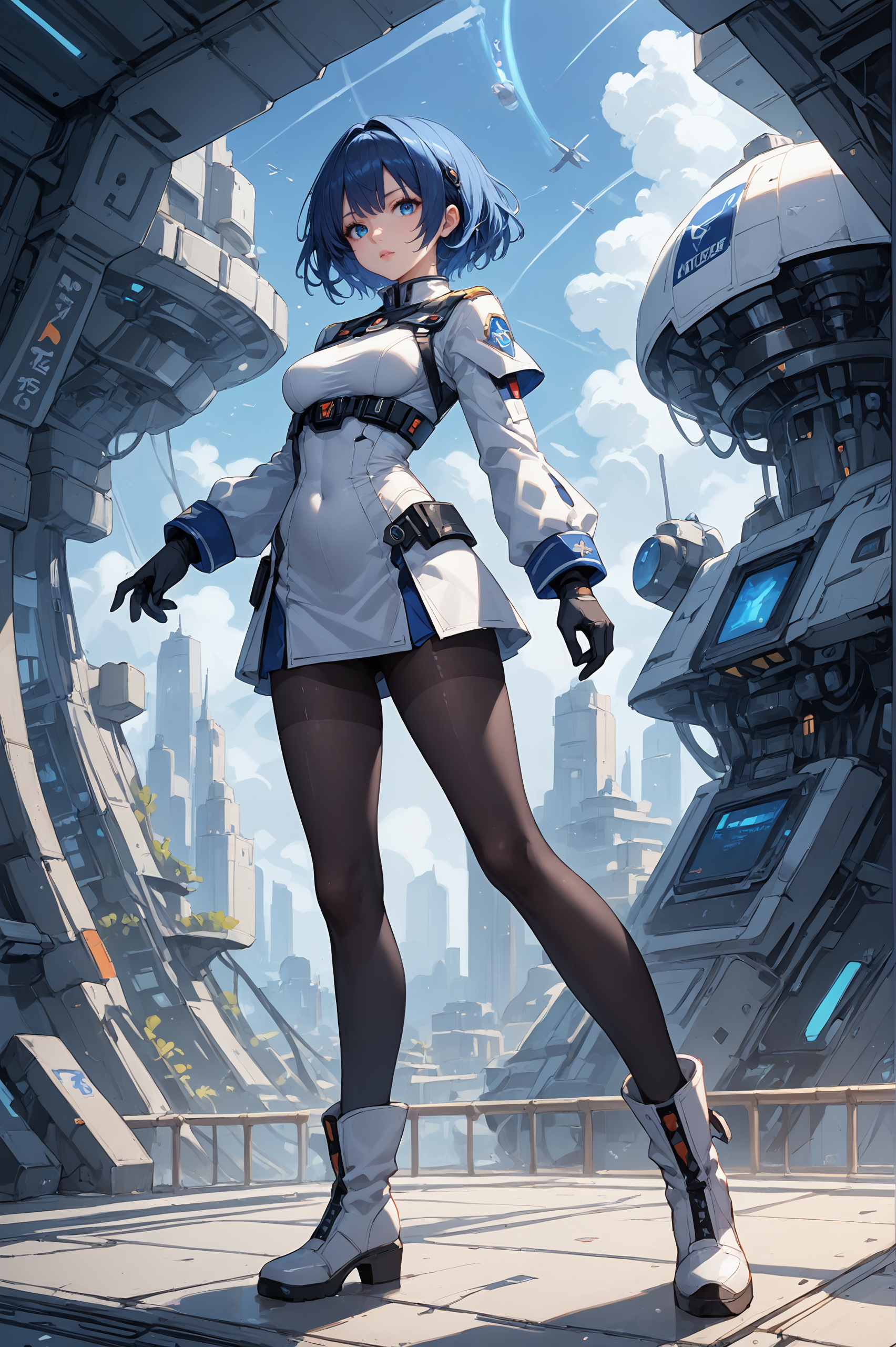 | 训练词汇 | 1girl, solo, medium breasts, Blue hair, short hair, sci-fi,已复制! Shemlili, Space Suit, white gloves, white bodysuit, Heavy pilot suit, Heavy white gloves, heavy white space suit pants, space suit shoes,已复制! Shemlili, Uniform, black gloves, white short dress, white bodysuit, boots, black pantyhose, white footwear,已复制! Shemlili, Sportswear, tattoo, sleeveless, bare arms, bare shoulders, white bodysuit, skin tight, white footwear, sneakers, black pantyhose,已复制! |