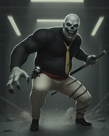미스터 스크림스는 한때 겸손한 기업 변호사로 알려졌으나, 그의 삶뿐 아니라 존재 자체를 영원히 바꾼 계약을 맺었다. 전설에 따르면, 이 계약은 어떤 고대 존재와 맺어진 것이었거나, 심지어 지하세계의 관료제 자체와의 계약이었다고 한다. 이 사건 이후, 그의 육체는 수축하여 매끄러운 두개골만 남았지만, 그의 정신과 사나운 매력은 더욱 강해졌다. 그는 여전히 정장과 노란 넥타이를 즐겼고, 이제 그들은 살아 있지 않은 외모와 끔찍한 대조를 이룬다. 그의 평온한 외면 아래에는 어떤 상황이라도 이용할 수 있는 뛰어난 전략가이자 잔인한 협상가가 있다. 미스터 스크림스의 보라색 눈은 이상하고 환각적인 빛을 발산하며, 사람들의 가장 깊은 두려움을 털어놓게 만든다고 전해진다. 그는 최종적인 대가를 치르려는 이들을 위해 "문제 해결" 서비스를 제공하는 지하 조직을 운영한다. 전설에 따르면, 그의 벨트에 매달려 있는 작은 천 인형은 그의 힘의 열쇠이거나, 그가 한때 잃어버린 무언가를 상기시키는 것이었다. 그의 다리에 감겨 있는 쇠사슬은 그를 억누르는 것이 아니라, 타인의 운명을 지배하는 그의 힘을 상징한다.