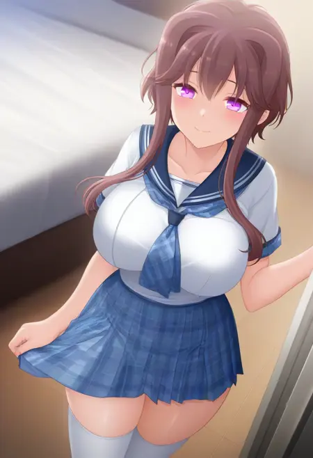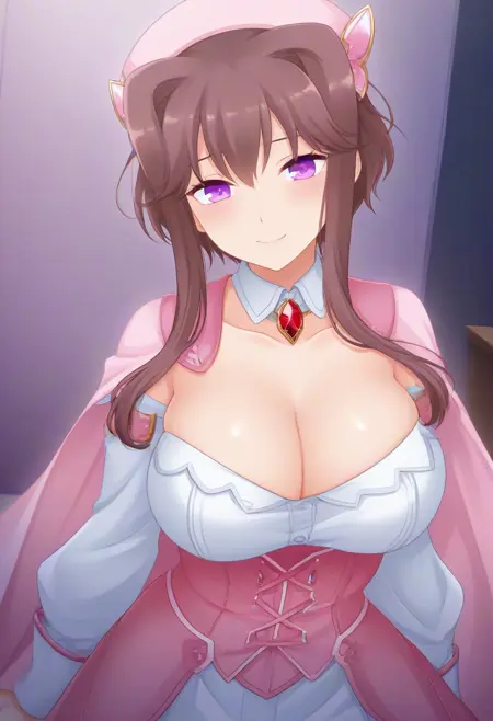 推荐提示词:Lyiene Belesford,紫瞳,棕发,长侧发,刘海,