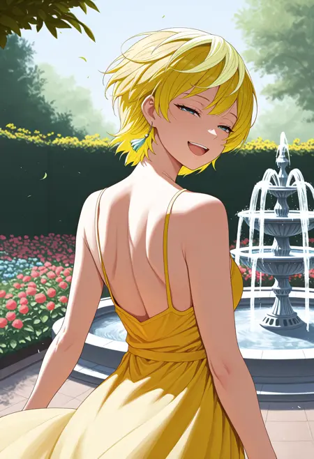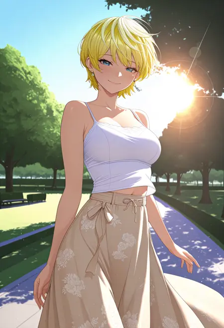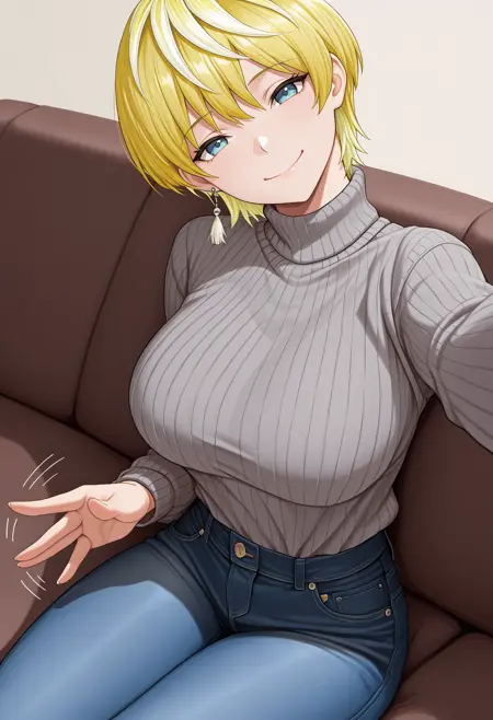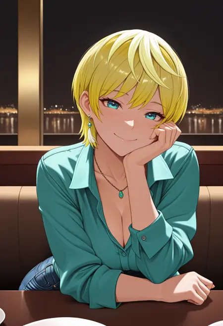 T3nk4, blue eyes, multicolored hair, blonde hair, short hair, single earring