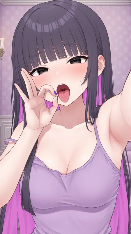 ngsmcstyle, yyukari, colored inner hair, long hair, medium breasts, purple nails