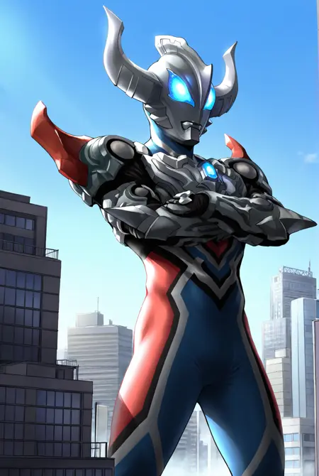 ultraman g33d, bodysuit, tokusatsu, alien, glowing eyes, blue eyes, boots