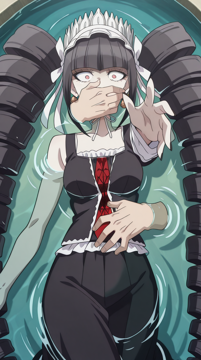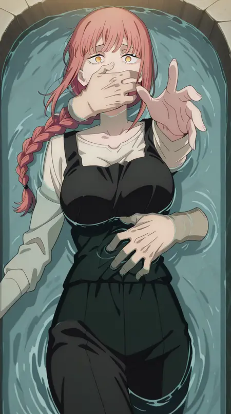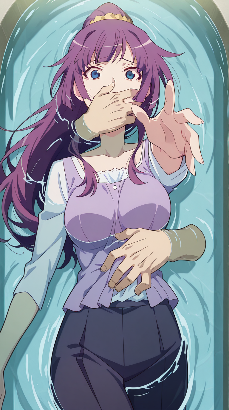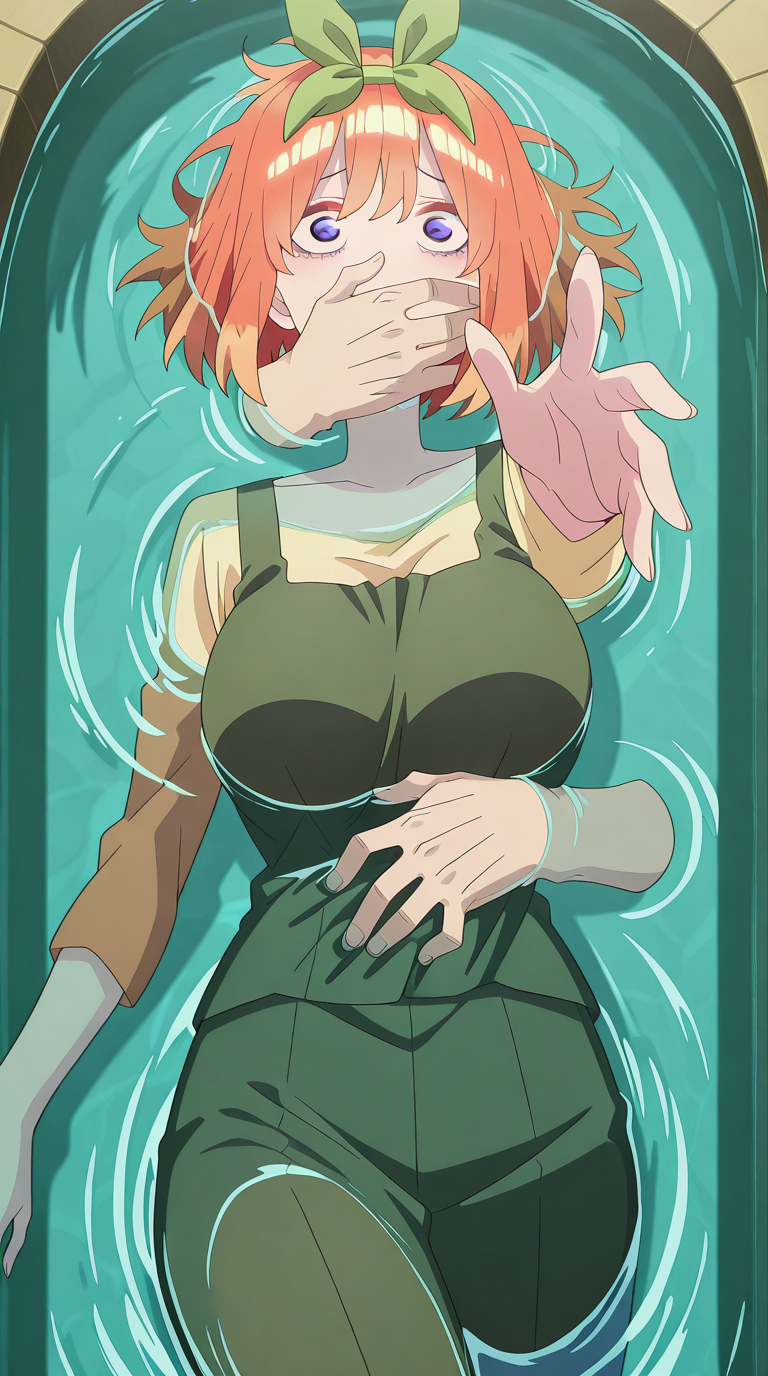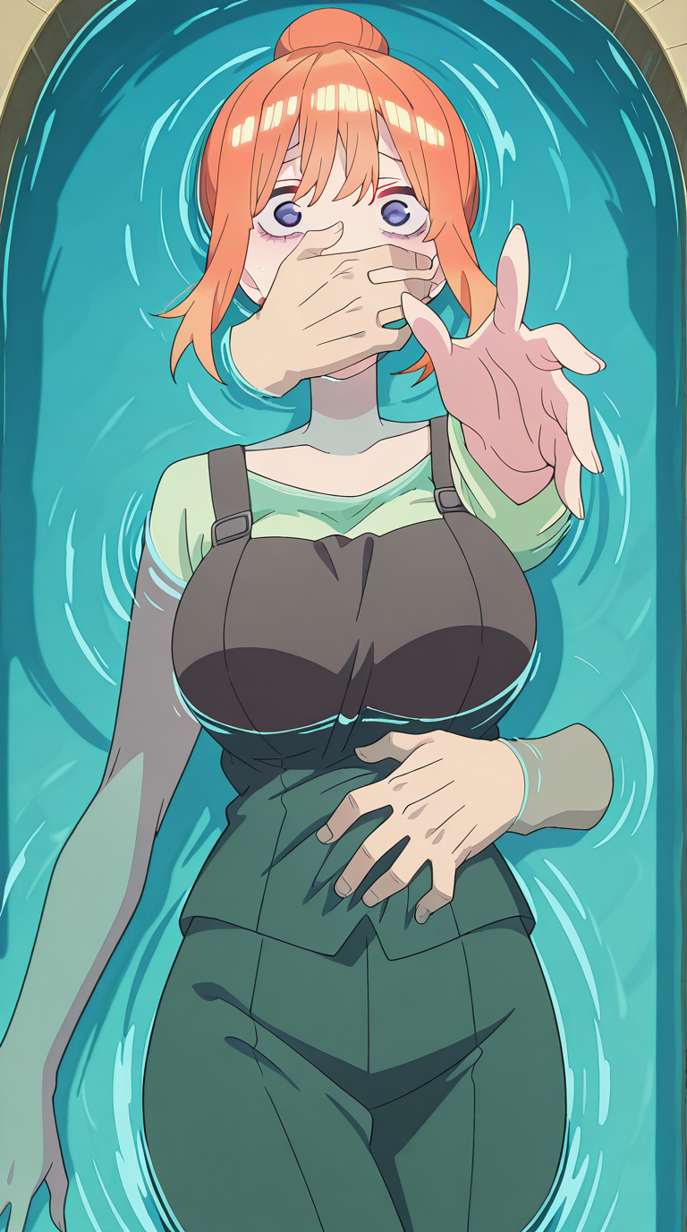 lora:into-the-deep-illustriousxl-lora-nochekaiser:1, into the deep, solo, disembodied limb, covering another's mouth, grabbing another's stomach, reaching, reaching towards viewer, partially submerged, water, scared, outstretched arm,