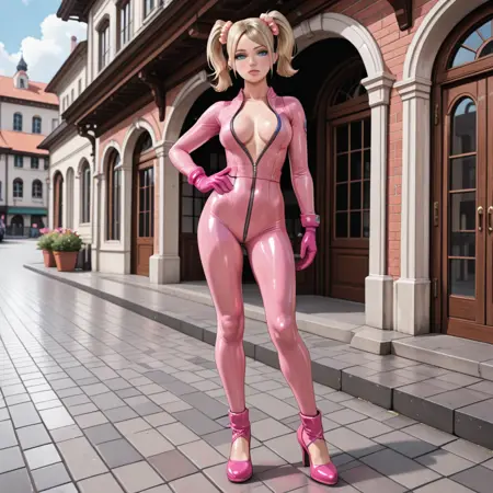 ピンクのラテックスボディスーツ