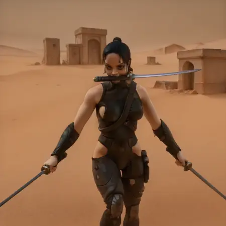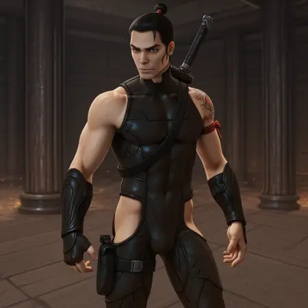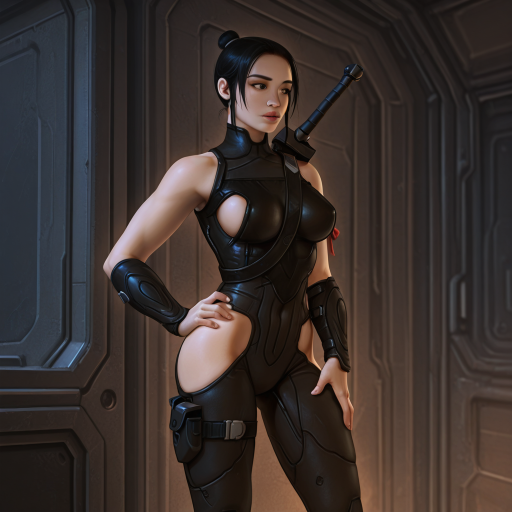 BillieCh,female,,sleeveless,neck-tie bodysuit,sleeveless, bracers,exposed_hips,neck-tie bodysuit,