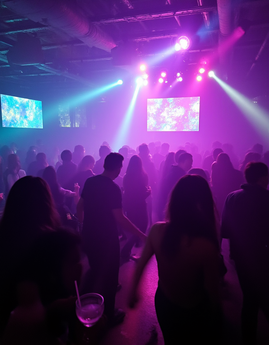 다양한 장소에서 실내 클럽 장면을 생성하세요: