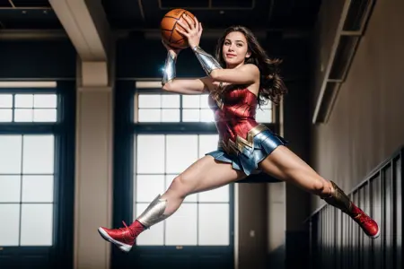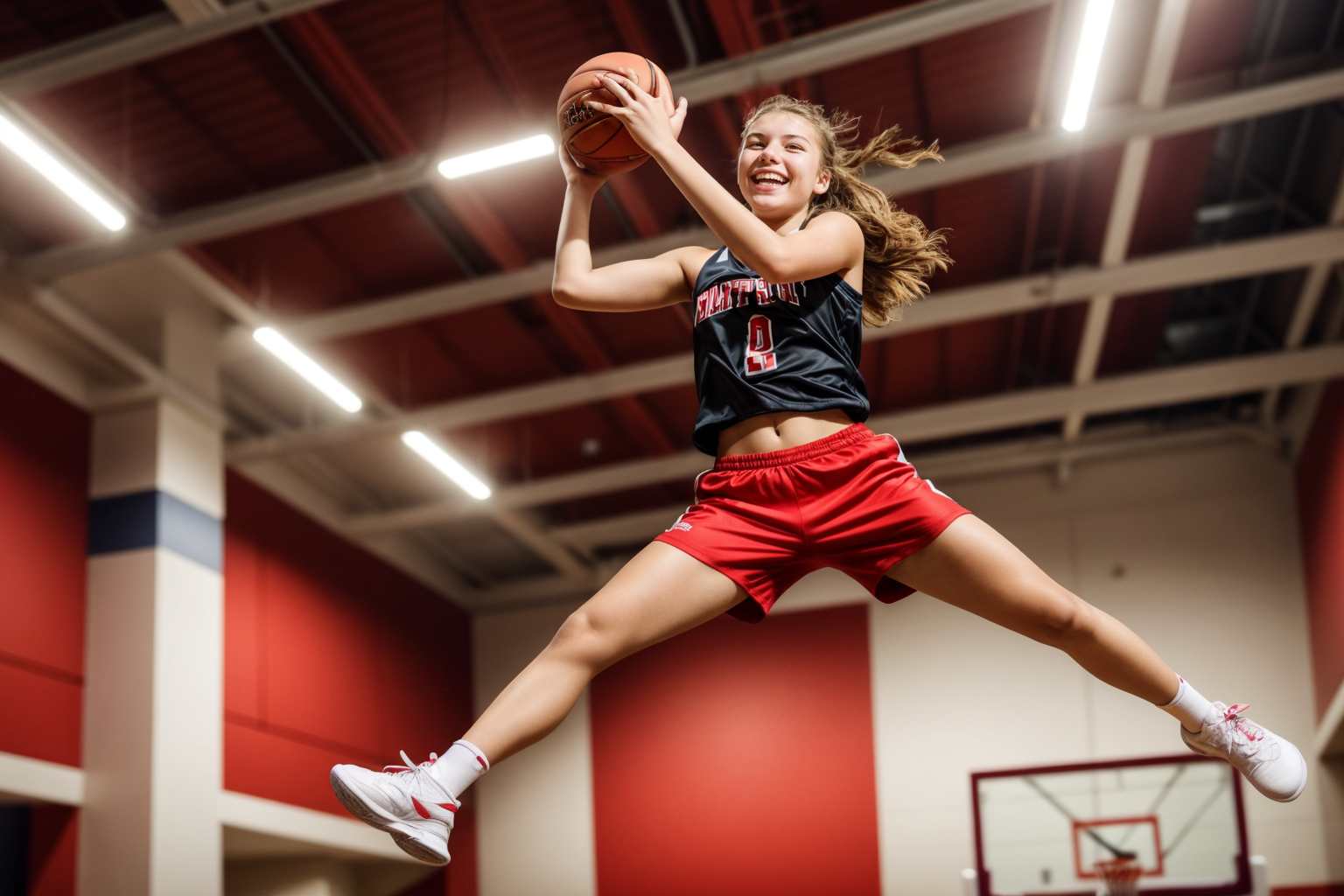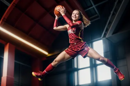 提示:穿着白色短裤的篮球运动员跃起,双手持球投向篮筐,