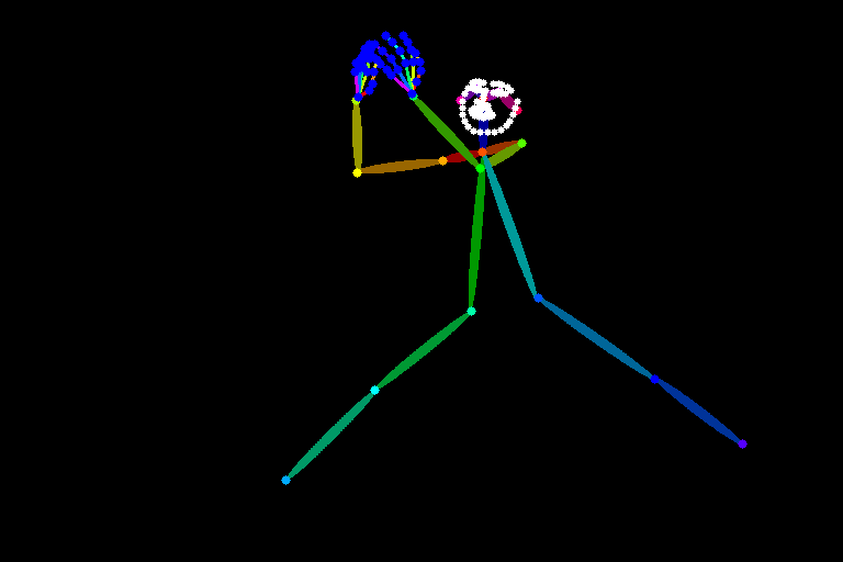 OpenPose 骨骼结构及带提示信息的示例图像。