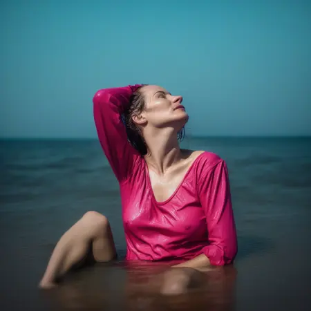 이 작은 모델은 물을 추가하여 젊은 여성들을 더 아름답게 만듭니다.