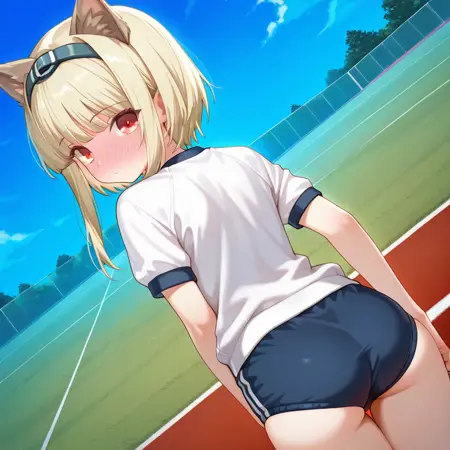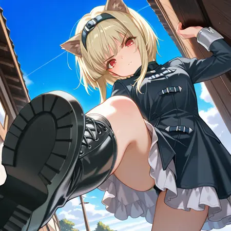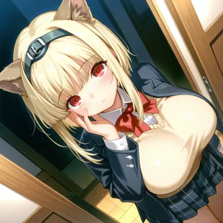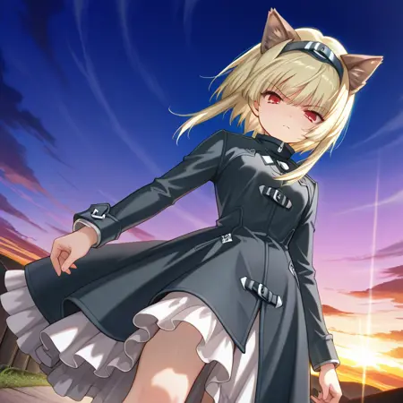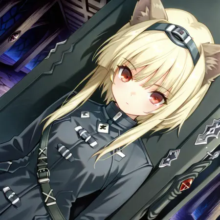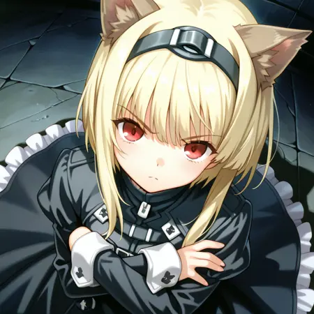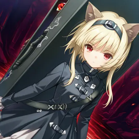 Hiouguu Kaguya\(alicesoft\),cat ears,blonde hair,bob cut,buckled headband,sidelocks ,red eyes,
