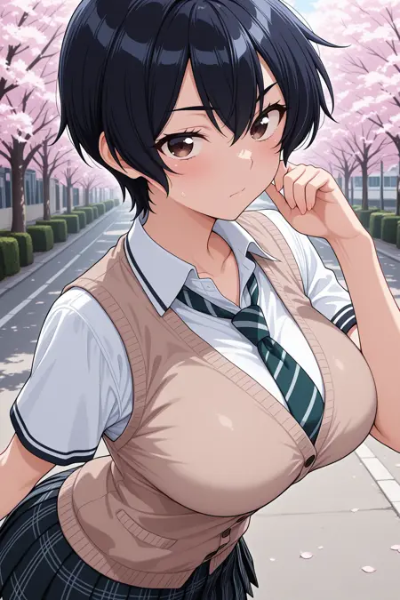 kokonoe aki (modaete yo adam-kun)、茶色の目、黒髪、短髪