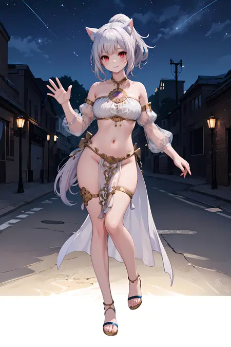 프롬프트: 댄서, 밴데오, 골반 커튼, 분리된 소매, 할터넥 목걸이, 십자 끈绑,