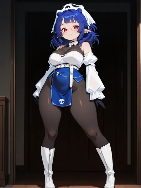 | トレーニングワード | DizKuro, dark-blue hair, red eyes, twindrills, pointy ears, large breasts, lace choker, cleavage, red rope between breasts, blue dress, frilled dress, detached sleeves, black gloves, black pantyhose, black high heels,コピーしました! OffiKuro, dark-blue hair, red eyes, medium hair, glasses, pointy ears, large breasts, (white top:1.2), lace black bra, black bodystocking, bare shoulders, skull detached collar, covered collarbone, cropped jacket, white belts, belt chain, detached white sleeves, black gloves, blue pelvic curtain, white boots, white headwear,コピーしました! NurKuro, dark-blue hair, red eyes, long hair, pointy ears, large breasts, open cleavage, long sleeves, white gloves, red belt, nurse, thigh straps, white garter belt, white thigh boots, heels boots, nurse cap,コピーしました! |