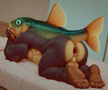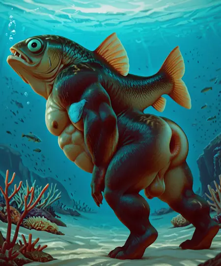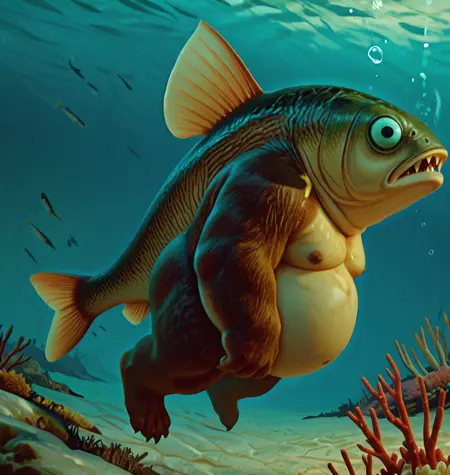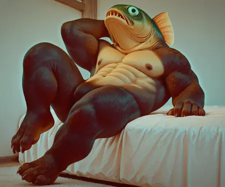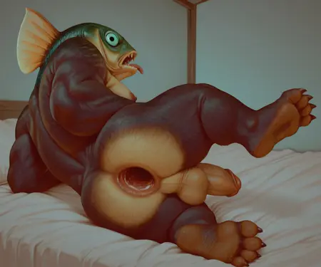 trp4x, 1boy, solo, male focus, no humans, aqua sclera, black eyes, nostrils, claws, sharp teeth, full body, overweight, big belly