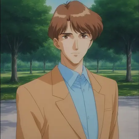 키워드: 갈색 머리, 갈색 눈, 키가 크다, 남자답다, 빈티지 애니메이션