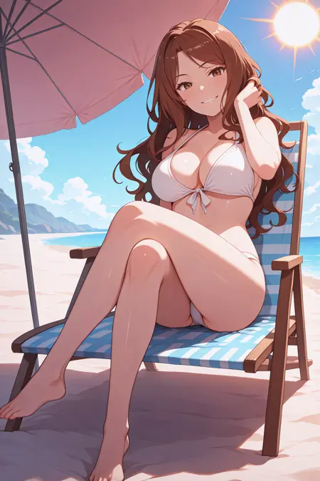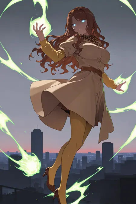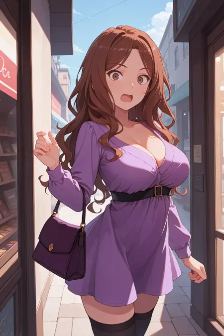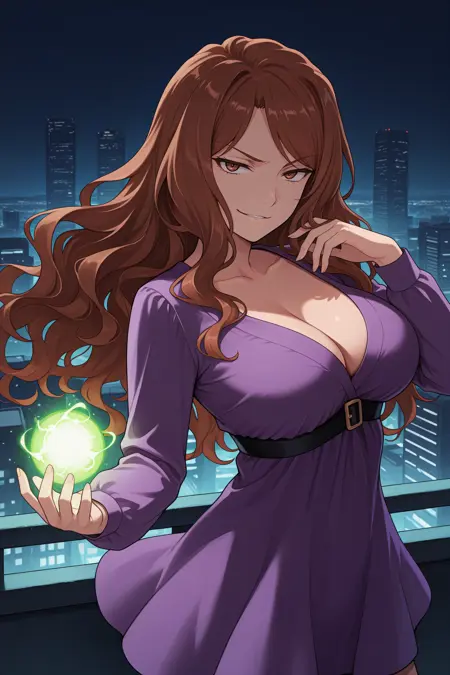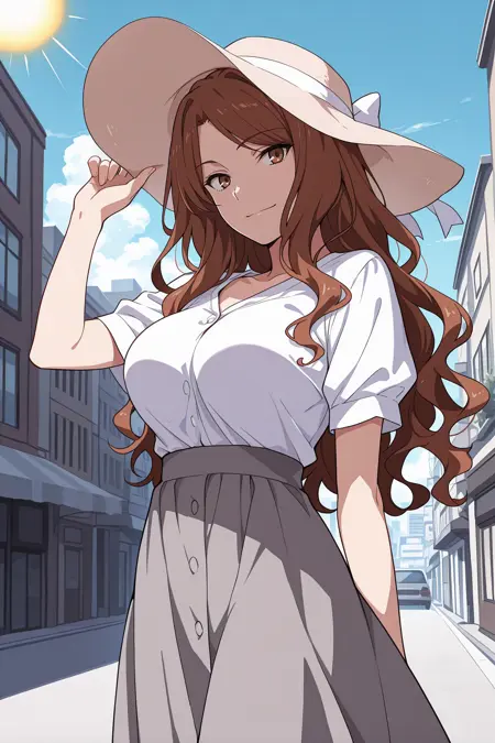 Trigger word is "mgszr" and "brown hair, wavy hair, long hair, brown eyes" is required.