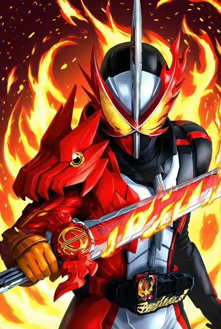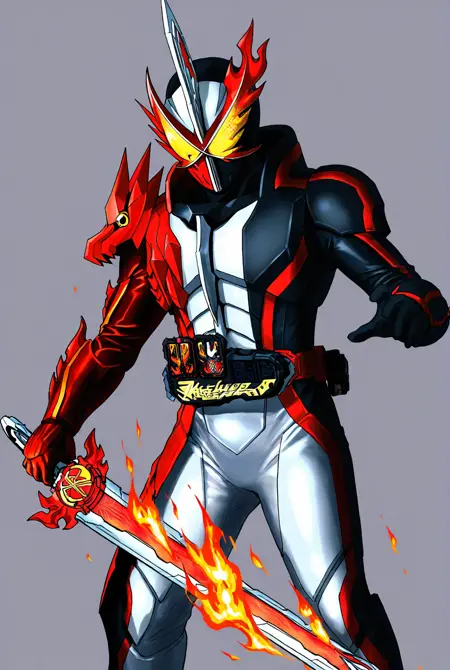 kamen rider s4ber, armor, shoulder armor, helmet, tokusatsu, belt, bodysuit, skirt armor, yellow eyes, gloves, boots