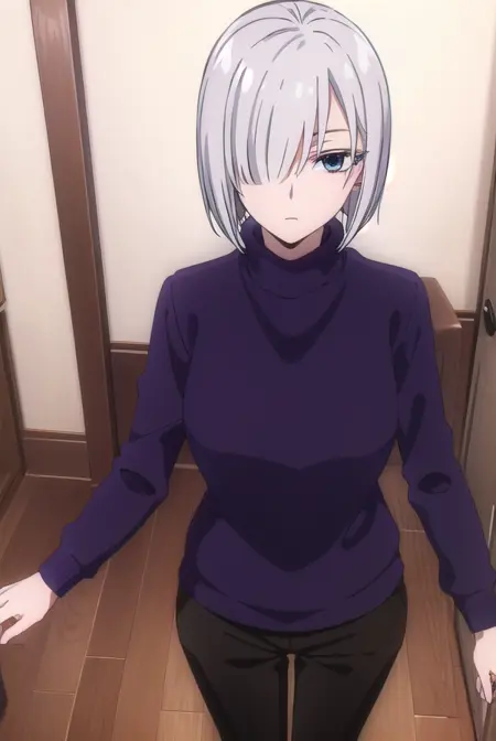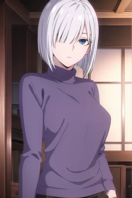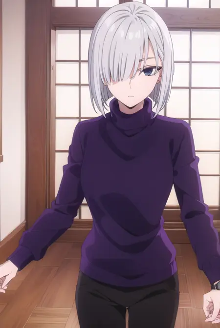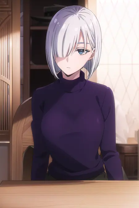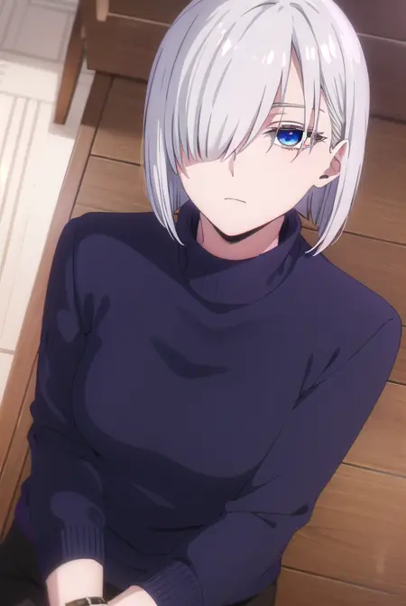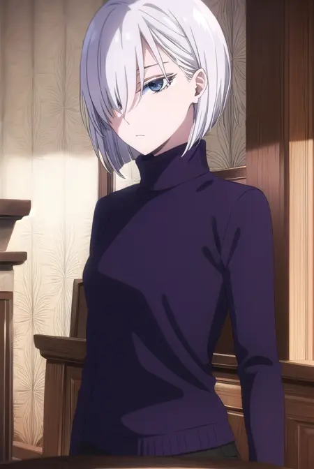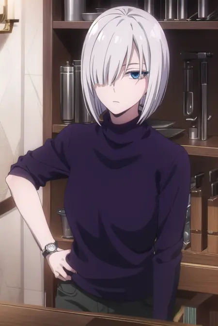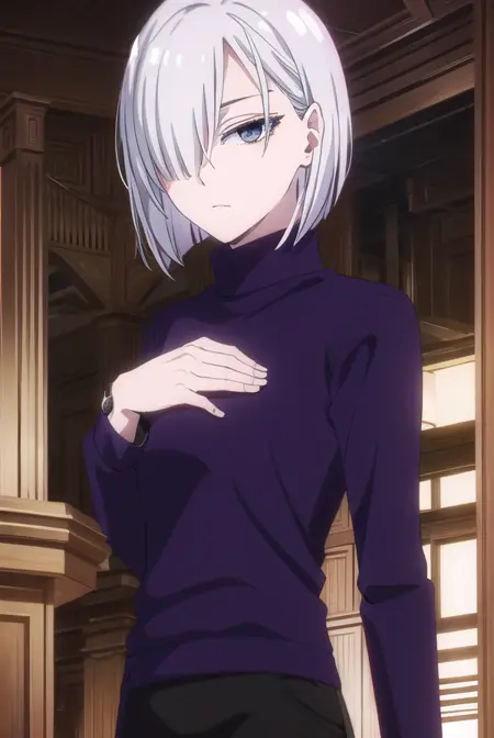 fiona frost, 흰 머리, 단발, (한 눈 위의 머리카락:1.5), (회색 눈:1.5),