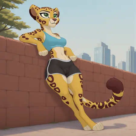 Fuli, anthro, cheetah, green eyes, folded ears, tail,