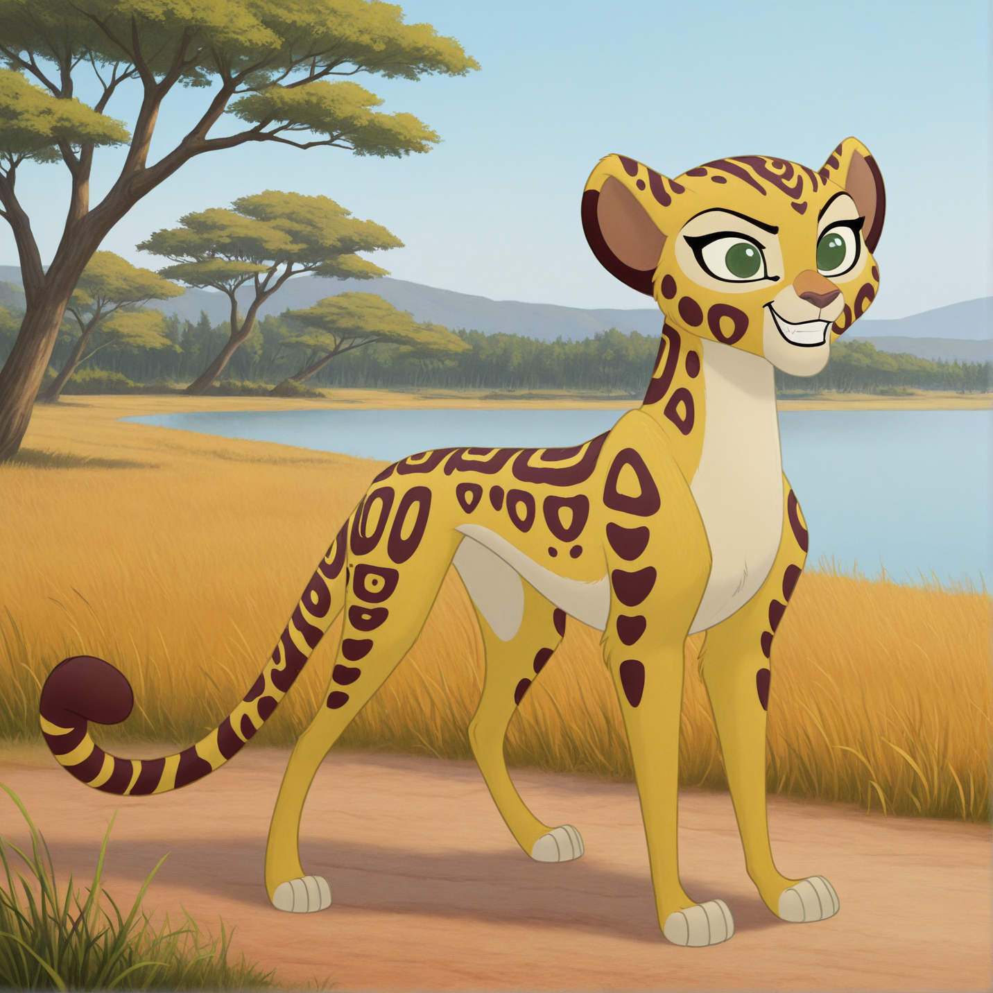 Fuli, feral, cheetah, green eyes, folded ears, tail,