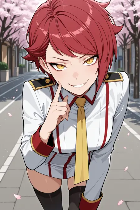 daphne lauros, yellow eyes, short hair, red hair