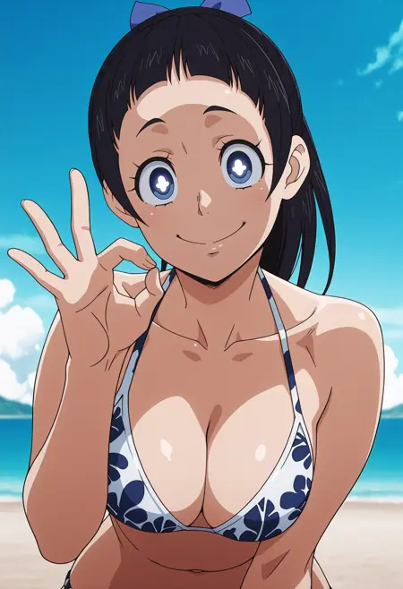 黑发,长发,蓝眼睛,符号形状的瞳孔,短刘海,马尾,发带