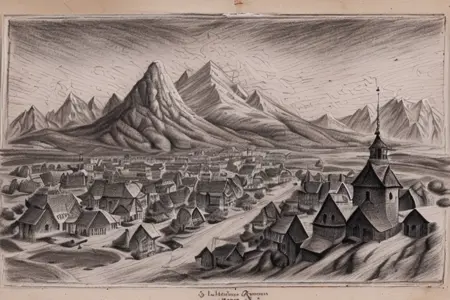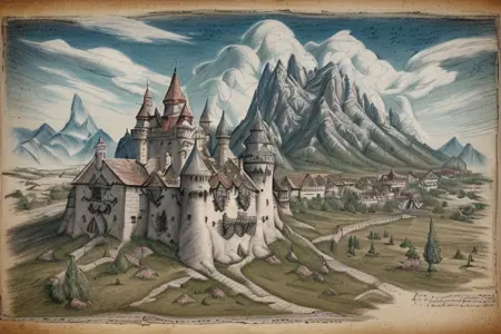 forgotten_pages a drawing a town with a castle at the center <lora:forgotten_pages:1>