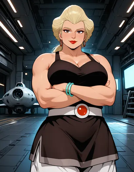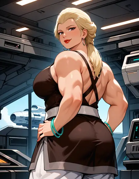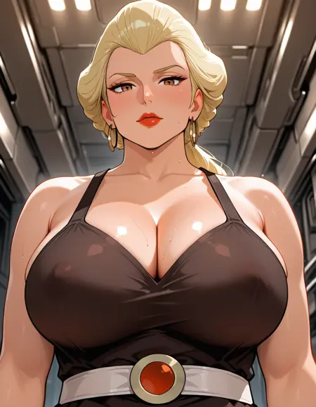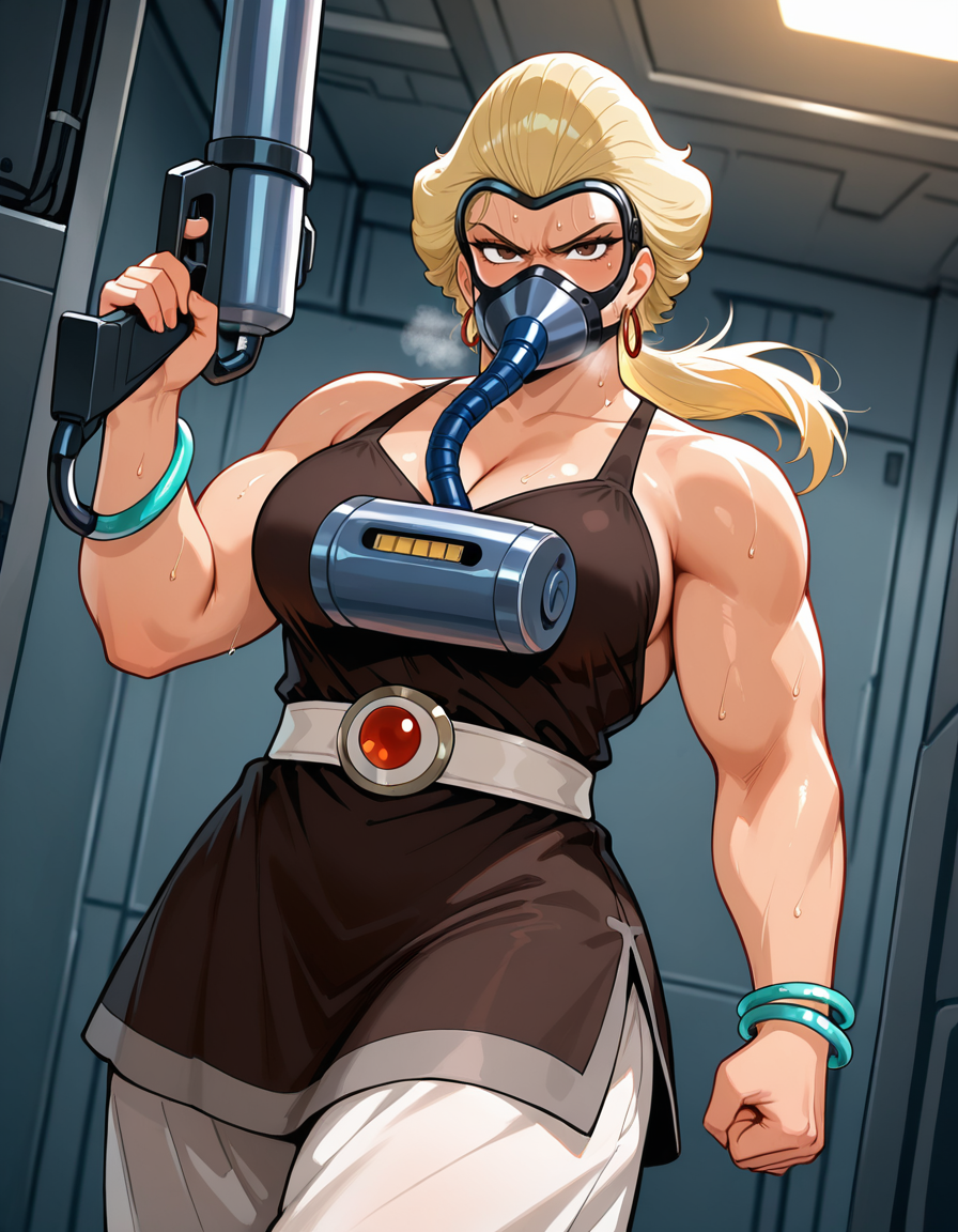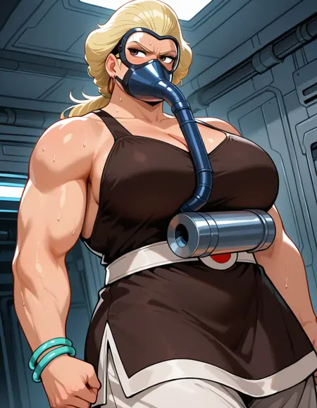 | トレーニングワード | (zophie-faddas), (1980s \(style\), science fiction, dark brown eyes, blonde hair, long hair, hair up, low ponytail, mature female, toned female, plump, huge breasts, cleavage), (hoop earrings, dark brown dress, backless outfit, bare shoulders, white belt, aqua bracelet, white baggy pants, red footwear), (red lips)コピーしました! (oxygen mask, goggles, oxygen cylinder:1.2)コピーしました! |