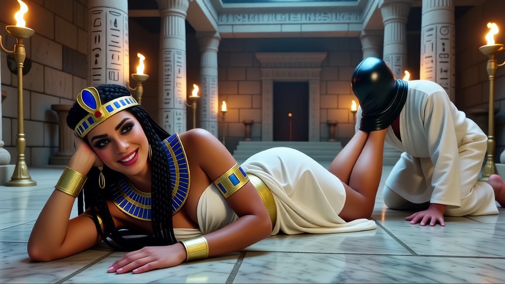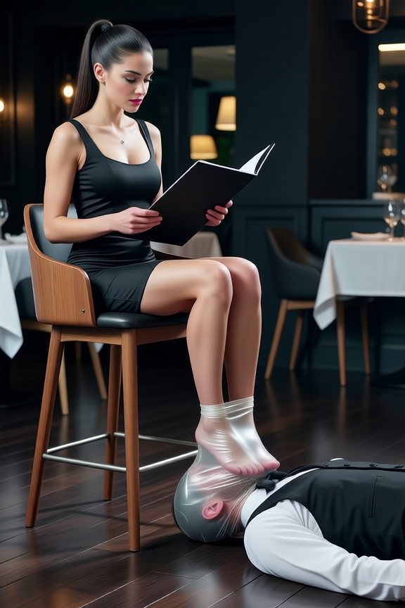 主要的 触发短语 应描述 女性将脚(或双脚)插入面罩 的动作。