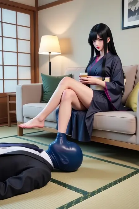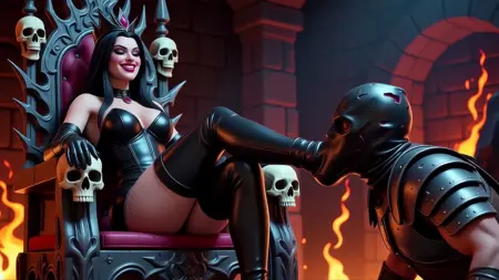 主要的 触发短语 应描述 女性将脚(或双脚)插入面罩 的动作。