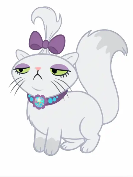 Opalescence, persian cat, cat, :< , solo, animalization,green eyes, whiskers, closed mouth, full body, bow, purple bow, no humans