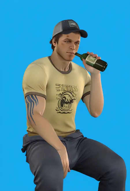 Ellis_L4D2, 3D_스타일, 리얼리스틱, 1남자, 남성 중심, 수염, 야구 모자, 모자, 혼자, 수염 자국,