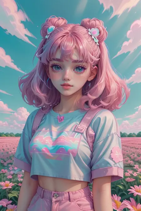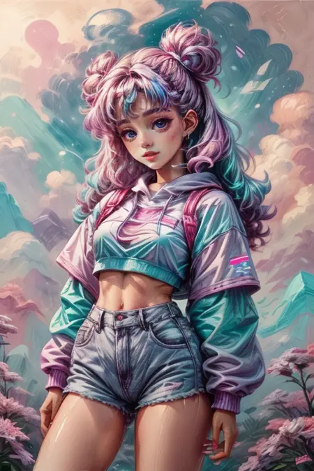 你可以在提示词开头添加“cutecore vaporwave style”来触发完整效果,但即使不添加,该LoRA也具有一定作用。尝试调高权重,看看会发生什么。