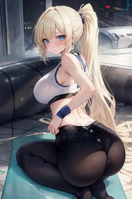 PS:你可以将其用作角色LoRA,建议提示词: stretching-hairstyle, outfit-stretching, 1girl, ass, solo, blonde hair, looking back, ass focus, yoga pants, looking at viewer, long hair, blue eyes, blush, ponytail, huge ass, from behind, bangs, all fours, hairband