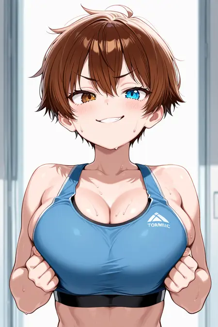 它的目的是帮助生成女性展示胸部的姿势,如果有效,“with hands” 应能让她用手完成;
