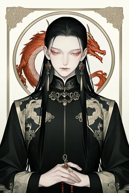s0emu, elegant oriental illustration, refined fashion portrait, ornate embroidery patterns