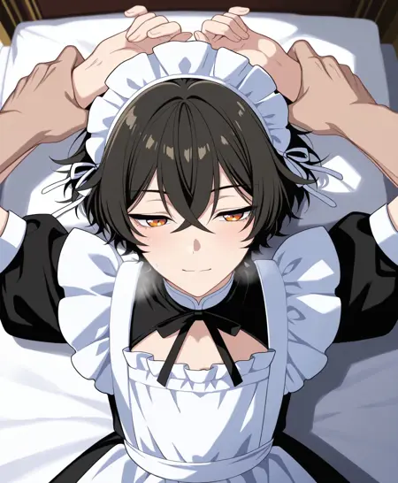 Trigger words are: Naraka,dark hair,bangs,hair between eyes,amber eyes,