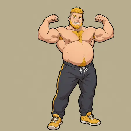 긍정적 프롬프트: bara, 근육과 지방, 배, 몸털