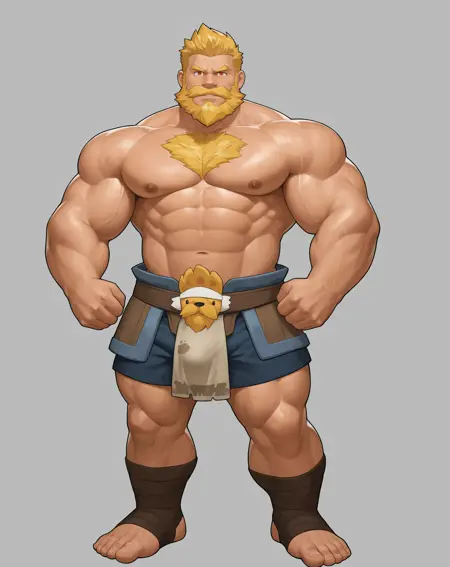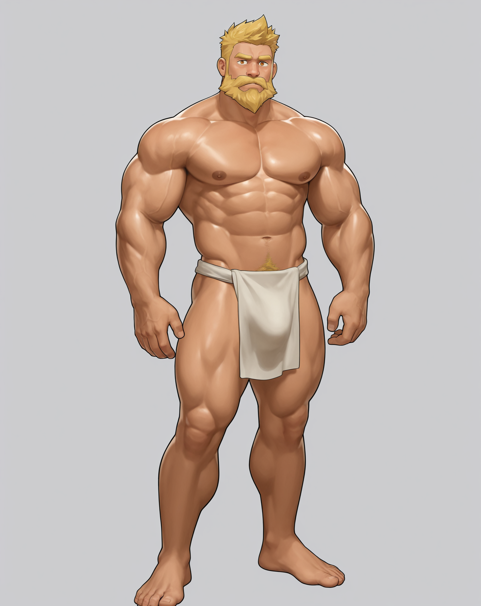 Positive Prompt: bara, muscle and fat, belly, body hair