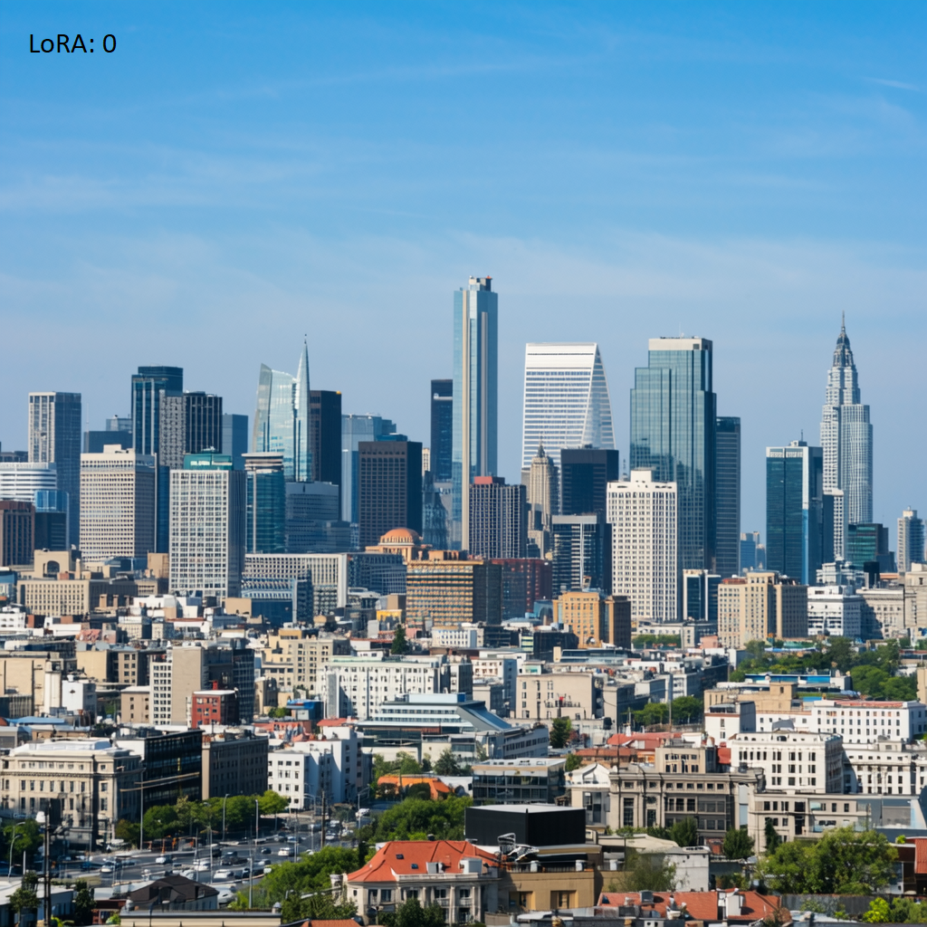 LoRA强度叠加在图片上。所有图片使用相同的种子。