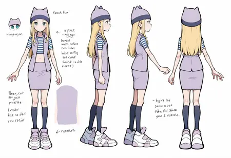 Outfit: hat,cat hat,beanie,animal hat,striped shirt,skirt,sneakers,shoes,shirt,socks,midriff,kneehighs,short sleeves,miniskirt,blue socks,vest,purple skirt,open clothes,crop top,black socks,pencil skirt,jacket,white footwear