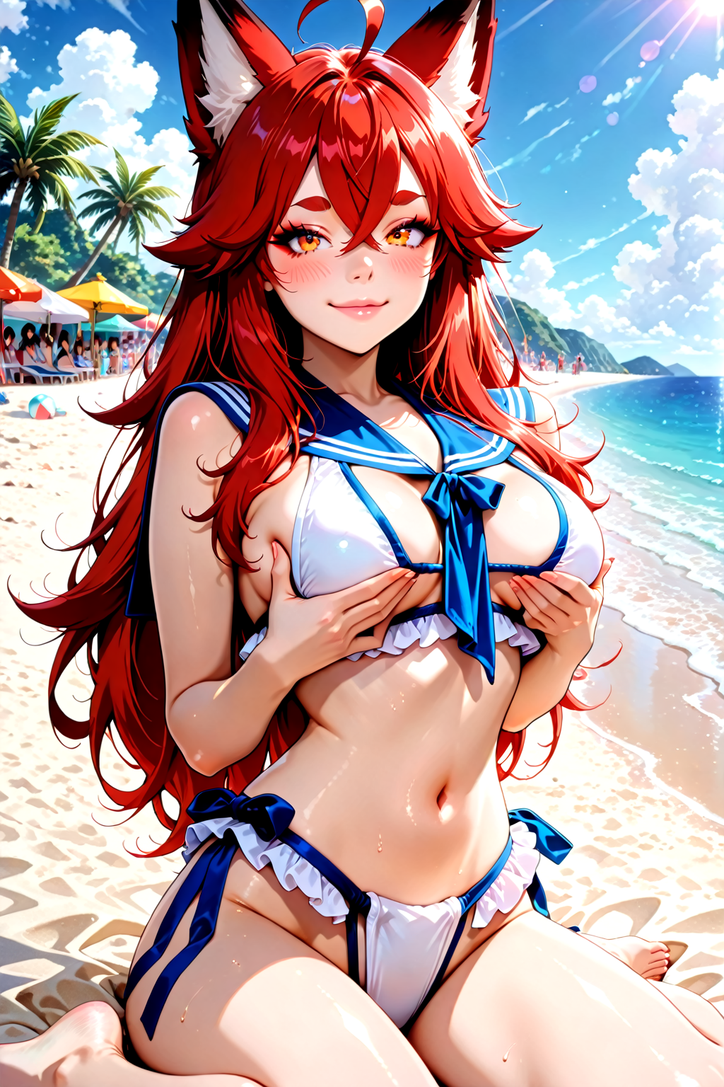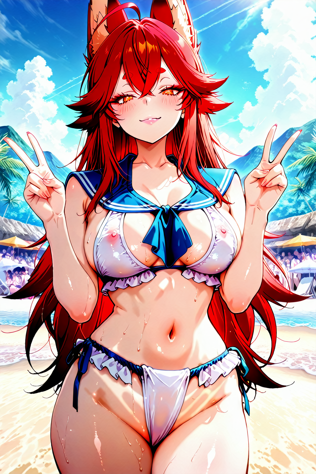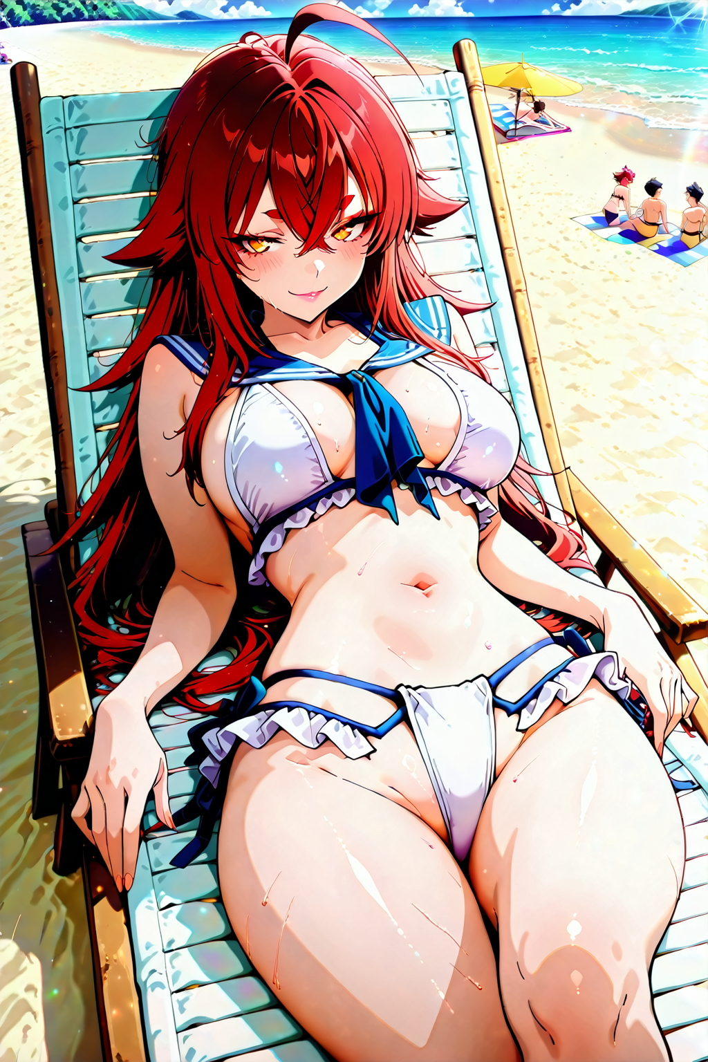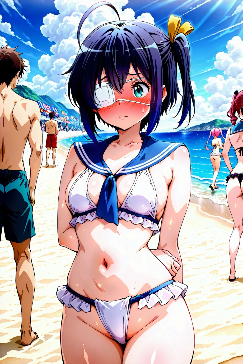 - 13878w,white bikini,bikini,blue ribbon,blue sailor collar,frilled bikini,frills,neckerchief,sailor bikini,