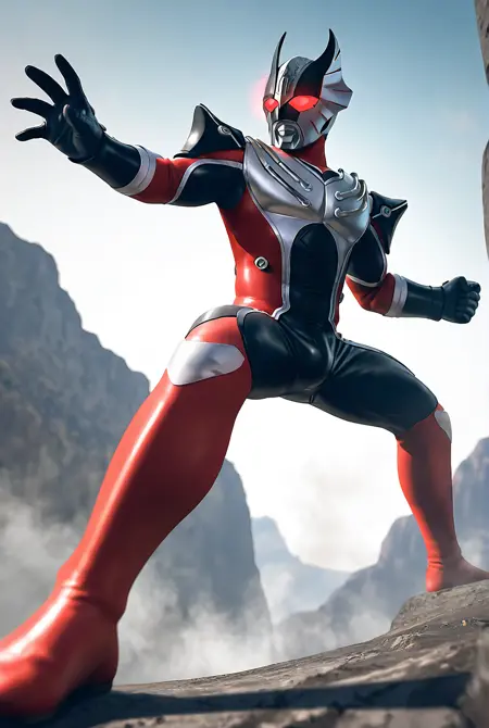 reimon b4ster,黑色紧身衣,红色紧身衣,多彩紧身衣头盔,特摄,紧身衣,发光眼睛,红色眼睛,盔甲,面具,手套,黑色手套,靴子,红色靴子