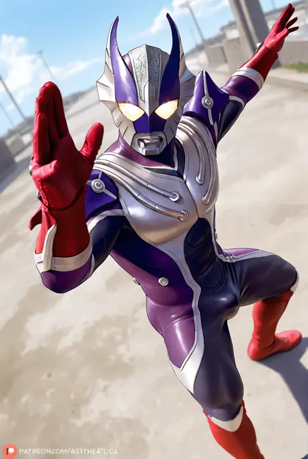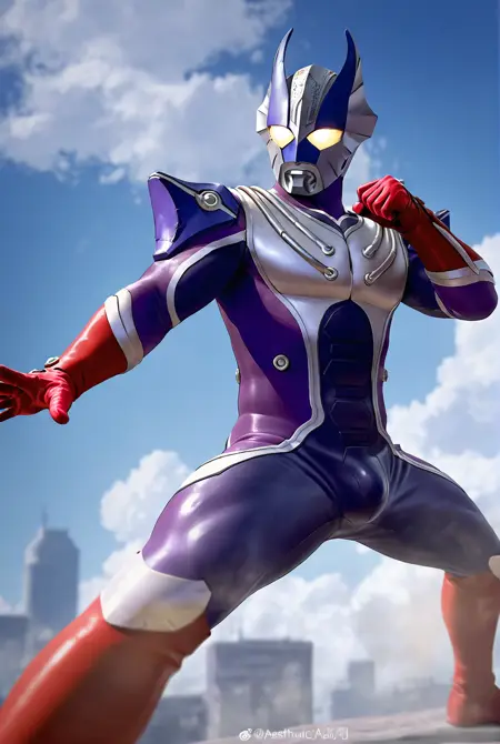 re1mon, 紫色紧身衣,多彩紧身衣,特摄,紧身衣,发光眼睛,黄色眼睛,盔甲,面具,手套,红色手套,靴子,红色靴子